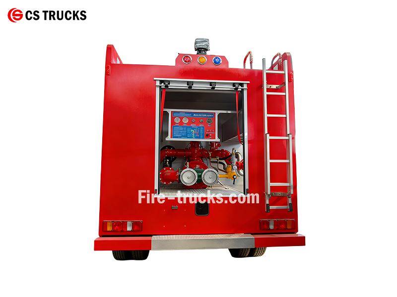 Panel ng kontrol: Nagtatampok ng malinaw na layout na may mga tagubilin sa pagpapatakbo, diagram ng tubo ng tangke, mga pressure gauge, mga indikasyon ng antas ng tubig at foam, emergency stop, PTO engagement, pangunahing kuryente, mga kontrol ng bomba, at mga switch ng ilaw para sa parehong silid ng bomba at mga kompartamento ng kagamitan.