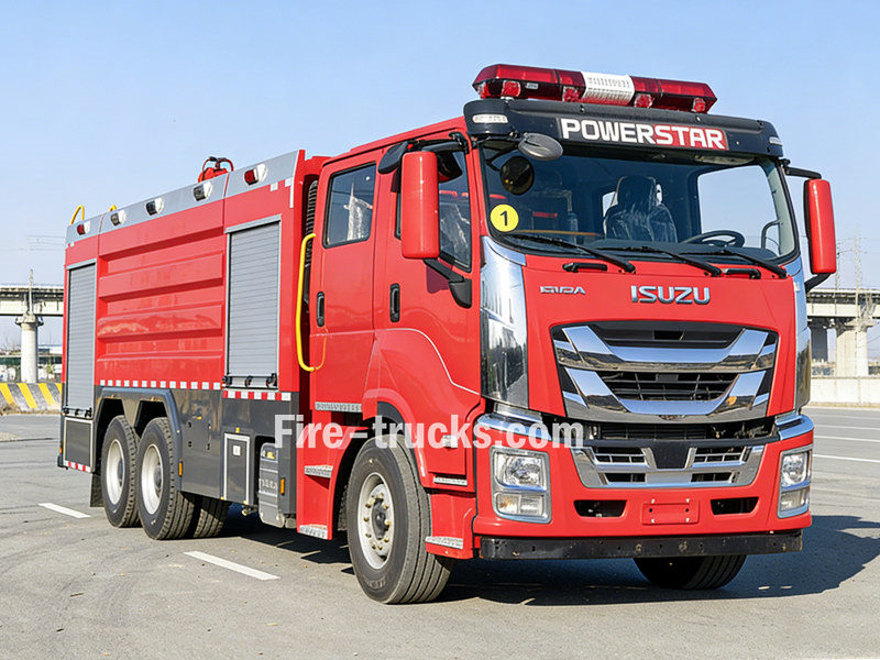 Ang Isuzu GIGA 6x4 police foam fire truck ay isang kagamitan sa pag-apula ng sunog na sadyang idinisenyo para sa pag-apula ng apoy na gawa sa langis at mga nasusunog na likido. Mayroon itong mga sistema ng pag-iimbak, pagpoproporsyon, at pag-spray ng foam liquid.