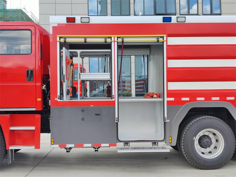 1. Front Equipment Room: Matatagpuan sa likod ng taxi ng driver, na nilagyan ng aluminum alloy roller shutter door, na ginagamit upang mag-imbak ng iba't ibang conventional fire-fighting equipment at personal protective equipment (tulad ng fire shovels, picks, axes, wrenches at iba pang demolition tools, hose catches, atbp.).