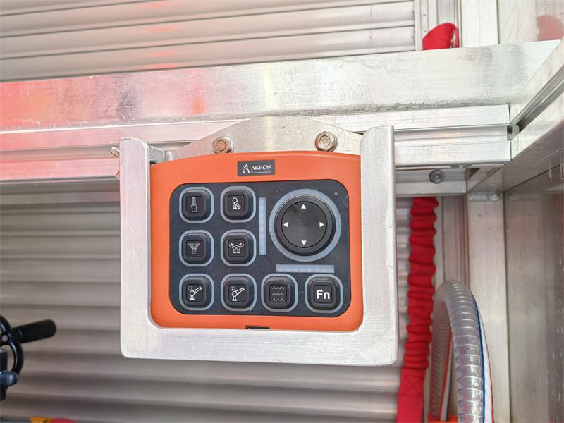 Control panel: Kasama sa system ang pinagsama-samang mga tagubilin sa pagpapatakbo, pag-iingat, mga structural diagram ng type A at type B na mga tangke at mga tangke ng tubig, isang komprehensibong fire truck control system, mga ilaw ng babala, electronic throttle, engine stop/start, one-button reset, one-button water filling, one-button type A control, one-button type B control, lighting switch, main power switch, emergency stop switch.