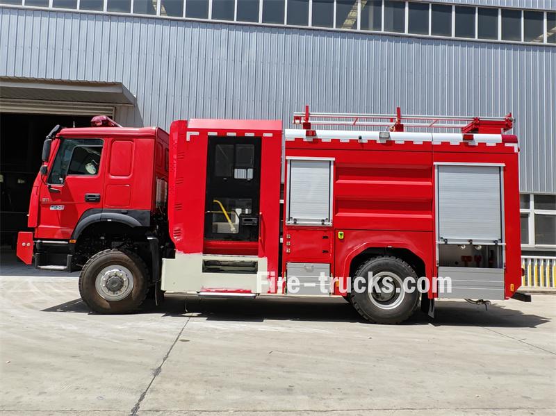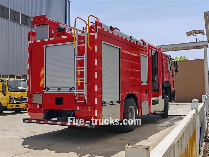 Ang HOWO 4×4 Fire Truck ay isang propesyonal na sasakyang panlaban sa sunog na binuo batay sa SINOTRUK HOWO 4×4 off-road chassis. Nilagyan ito ng de-kalidad na bomba ng sunog, isang tangke ng tubig na 6-kubiko metro, at isang tangke ng foam na 2-kubiko metro, kasama ang isang monitor ng sunog na may kakayahang mag-jet ng tubig hanggang sa 70 metro at isang kompartamento ng modular na kagamitan. Pinapatakbo ng 380-horsepower na makina, na nagtatampok ng part-time na four-wheel drive system at mga gulong na nasa labas ng kalsada, ang sasakyang ito ay nagpapakita ng namumukod-tanging all-terrain mobility. Partikular na idinisenyo para sa mga mapaghamong sitwasyon sa paglaban sa sunog gaya ng mga kagubatan, mga sunog na nauugnay sa petrolyo, mga geological na sakuna, at makitid na lugar sa lunsod, nagsisilbi itong isang mabilis na pagtugon sa mga mobile firefighting equipment.