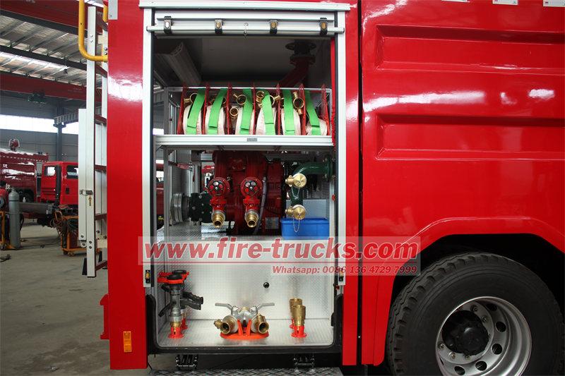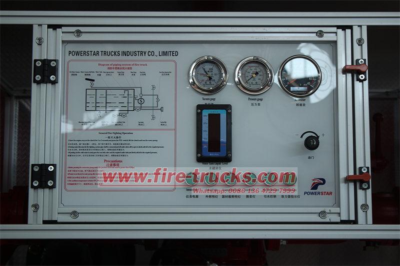 tanker material PP, 4X4, 6X6 drive, RHD drivePOWERSTAR 6000L Water Fire Tender ay binago batay sa ISUZU GIGA QL1180EQFRY chassis, nilagyan ng 6HK1-TCG61 engine at isang FAST 8-speed transmission. Nagtatampok ito ng bagong ISUZU VC61-class cab na may heating/cooling air conditioning, power steering, central locking, power windows, multifunctional steering wheel, at multifunctional LCD instrument panel. Ang ISUZU GIGA fire tanker truck ay binubuo ng dalawang pangunahing seksyon: ang firefighter crew compartment at ang katawan. Ang kompartimento ng crew ay isang double-row na disenyo, na nakaupo sa 2+3 tauhan. Ang harap ng katawan ay naglalaman ng kompartimento ng kagamitan, ang gitnang seksyon ay naglalaman ng tangke ng tubig, at ang likurang seksyon ay ang silid ng bomba. Ang tangke ng tubig ay gawa sa hindi kinakalawang na asero na may kapasidad na 6000kg. Nilagyan ito ng CB10/40 normal-pressure fire pump, na na-rate sa 40L/s, at isang top-mounted PS40W fire monitor na may saklaw na 65m at 360° na kakayahan sa pag-ikot. Ang sasakyang ito ay nailalarawan sa pamamagitan ng mataas na power-to-weight ratio nito, komprehensibong performance, at sentralisado, user-friendly na mga kontrol.