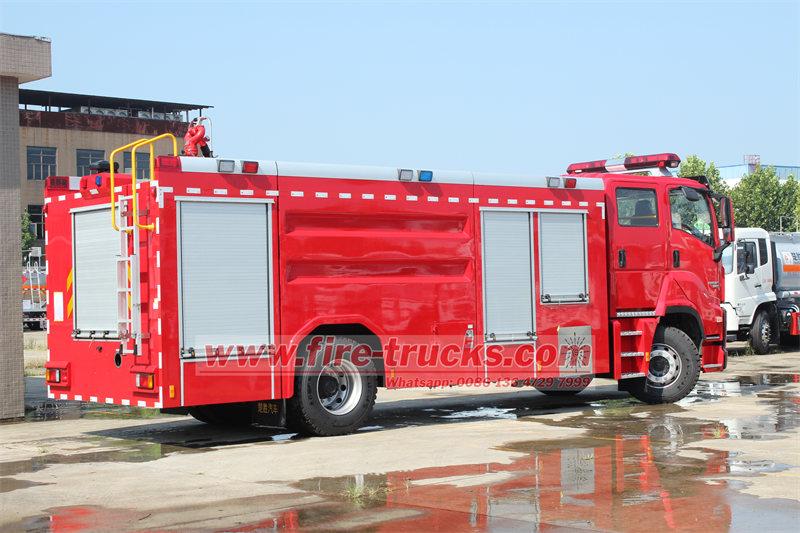 Ang ISUZU 6000L Water Fire Truck ay binuo sa isang ISUZU GIGA chassis, na nagtatampok ng 4x2 drive system at 4500mm wheelbase. Pinapatakbo ito ng 240-horsepower na 6HK1-TCG61 engine na ipinares sa isang FAST 8-speed transmission, na tinitiyak ang malakas na load-bearing capacity at maneuverability. Ang sasakyan ay nilagyan ng 6000L stainless steel na tangke ng tubig, na nagtatampok ng 4mm na kapal ng tangke na pader, karaniwang mga inlet/outlet port, at manhole para sa tibay at pagiging praktikal. Kasama sa sistema ng paglaban sa sunog ang isang rear-mounted CB10/40 normal-pressure fire pump na may flow rate na 40L/s, kasama ang isang PS40 manual fire monitor na may kakayahang lumampas sa 65 metro. Sinusuportahan ng monitor ang 360° horizontal rotation at -30° to 70° vertical adjustment, na nagpapagana ng mabilis na pagtugon sa sunog. Sa isang compact na disenyo at pinakamataas na bilis na 95 km/h, ang taksi ng trak ay tumatanggap ng limang tauhan, na ginagawa itong angkop para sa mga operasyong paglaban sa sunog sa lunsod at industriya, na pinagsasama ang kahusayan at pagiging maaasahan.